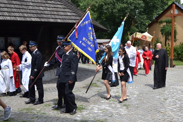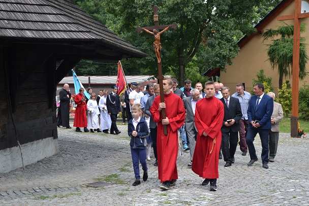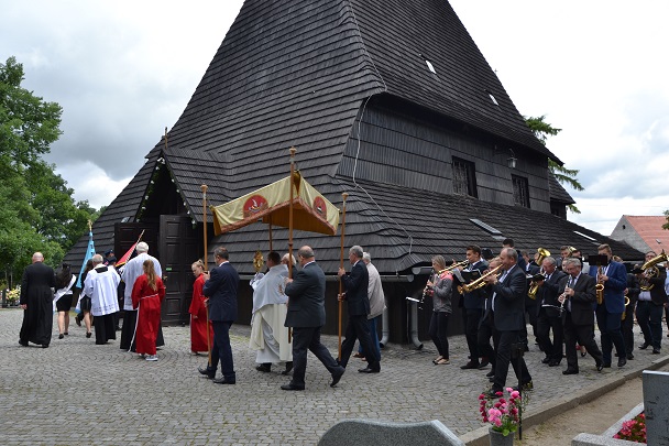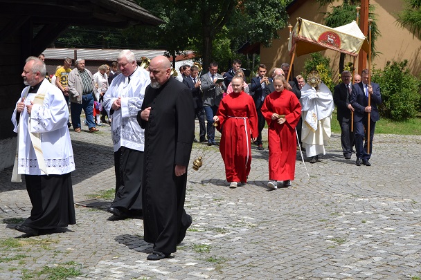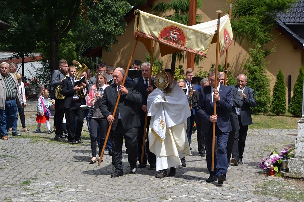 Po Mszy Św. wyruszyła procesja z Najświętszym Sakramentem wokół kościoła. Piękną oprawę muzyczną uroczystości zapewniła orkiestra parafialna oraz nasz Chór GAUDETE i jak co roku w uroczystej sumie odpustowej brała udział delegacja OSP Widów dzierżąc sztandar jednostki, obecne były również Dzieci Maryi ze sztandarem.