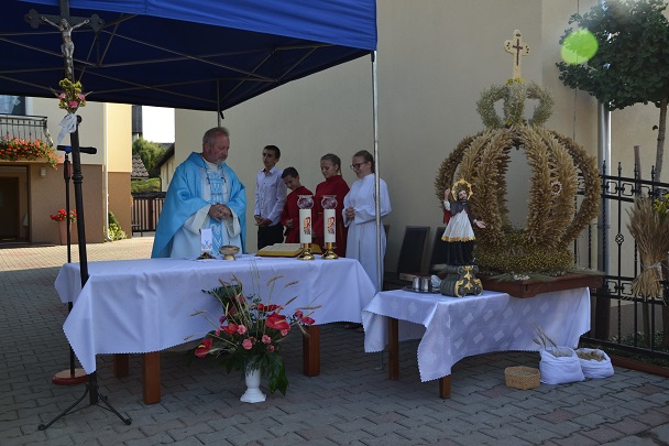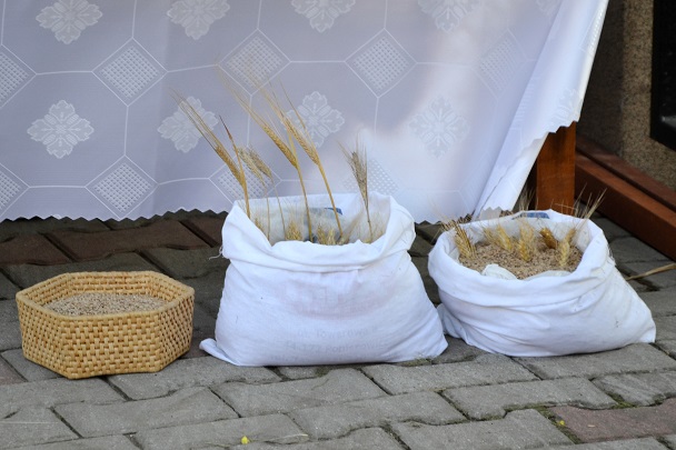 Podczas Mszy św. ks. proboszcz poświęcił zboża i nasiona .