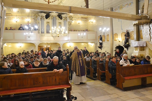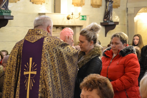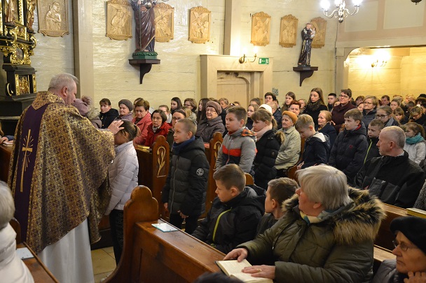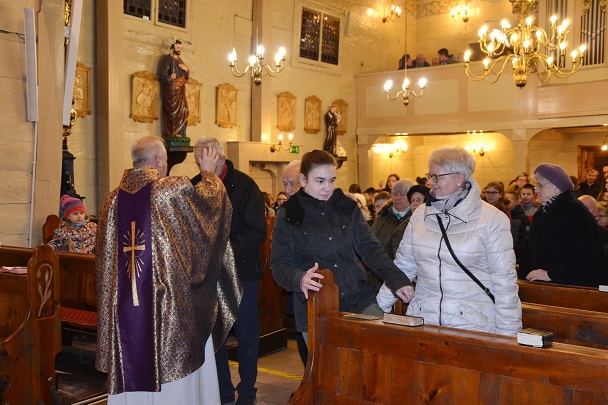 Ks. Proboszcz zaprosił wiernych do przeżywania Eucharystii z obrzędem posypania głów popiołem.