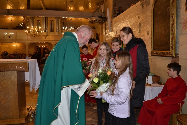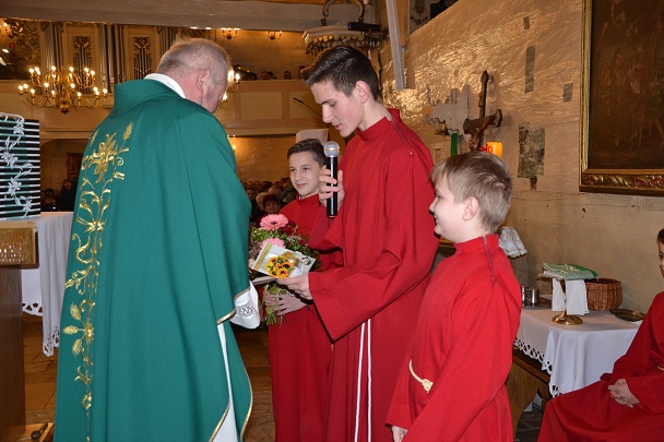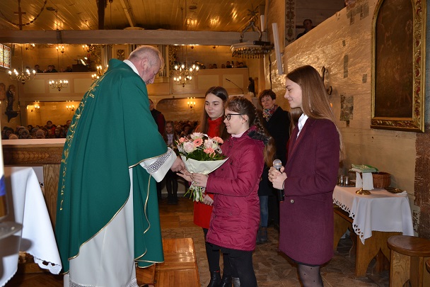 3 marca to dzień urodzin naszego księdza proboszcza Jana Palusa. Z tej okazji w kościele odprawiona została Msza Święta w intencji Solenizanta. Wszyscy zebrani w kościele otoczyli swojego Duszpasterza modlitwą, a przedstawiciele działających przy parafii grup, uczniowie naszej szkoły wraz z nauczycielami i Panią Dyrektor oraz sołtysi poszczególnych miejscowości złożyli Księdzu Proboszczowi życzenia.Oprawę muzyczną tej Eucharystii zapewniła nasza orkiestra parafialna oraz nasz parafialny chór GAUDETE.