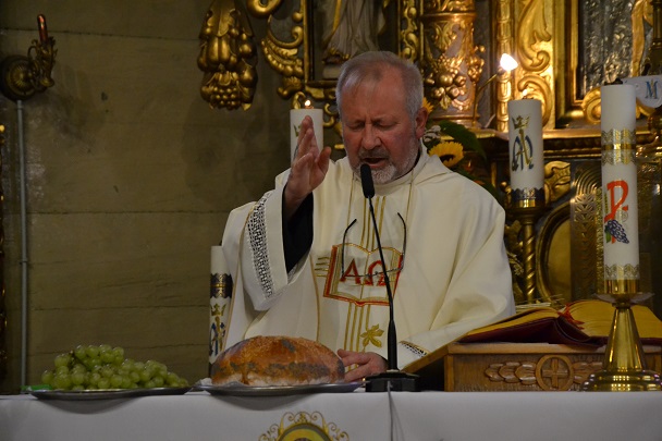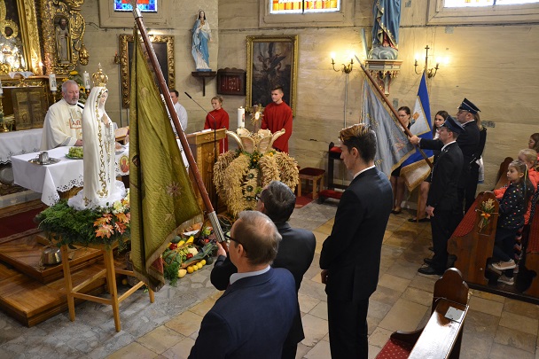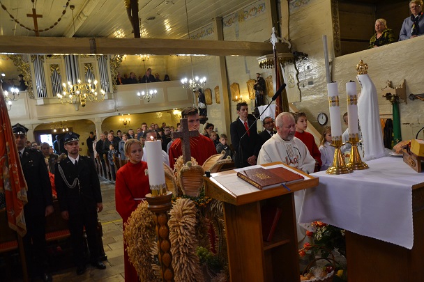 W niedzielę, 6 października 2019 r. przeżywaliśmy Dożynki Parafialne, czyli wielki dzień dziękczynienia dobremu Bogu za plony ziemi. Uroczystość jak co roku rozpoczęła się Mszą Św. w intencji rolników, którą odprawił i Słowo Boże wygłosił ks. proboszcz Jan Palus. Święto Plonów, to święto rolników, którzy proszą Boga o Jego błogosławieństwo dla swojej pracy. Ta uroczystość, to symbol dorobku ciężkiej pracy i stanowi wyraz hołdu dla rolników. Bez nich nie byłoby żniw. Nie byłoby chleba, a Chleb jest wartością bezcenną. Słusznie więc pisze poeta w wierszu „Chleb powszedni”: