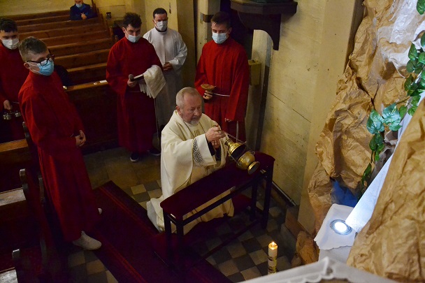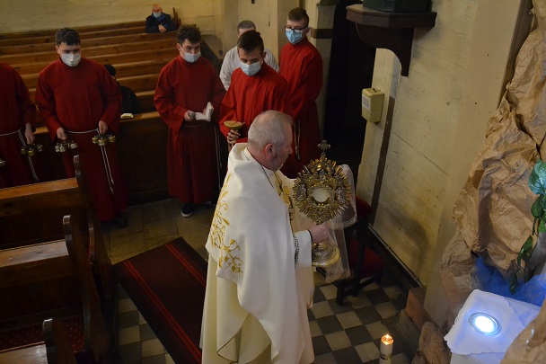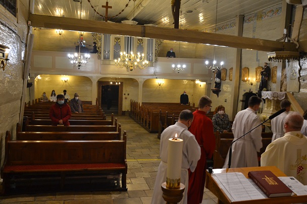 Wielki Czwartek o godz.18.00. odprawiona została Msza Św. Wieczerzy Pańskiej. W tym dniu składaliśmy dziękczynienie za ustanowienie przez Pana Jezusa w czasie Ostatniej Wieczerzy dwóch sakramentów: Eucharystii i Kapłaństwa. Adoracja trwała do godz.22.00.