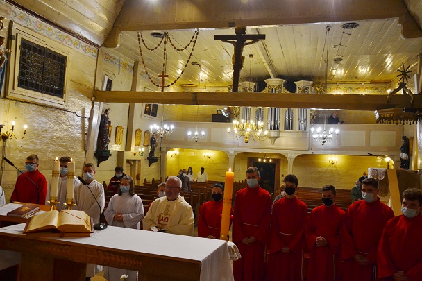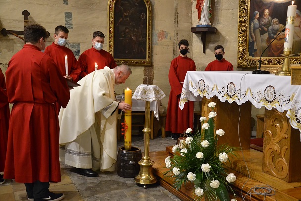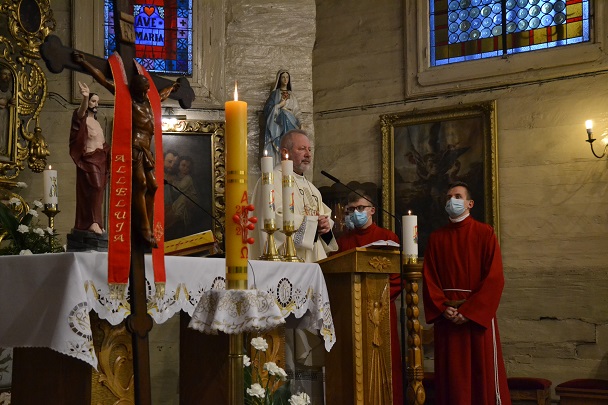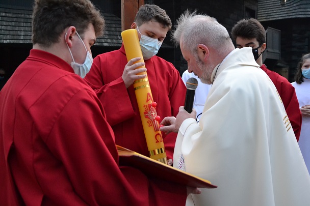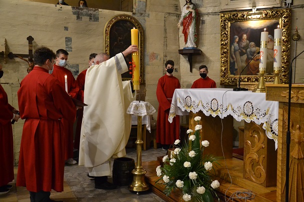 Świętowanie Uroczystości Zmartwychwstania Pana Jezusa rozpoczęliśmy Liturgią Wigilii Paschalnej o godz. 19.00. Msza św. sprawowana tego wieczora to Msza Paschalna Niedzieli Zmartwychwstania. W czasie tej Liturgii odnowiliśmy Przyrzeczenia Chrzcielne.