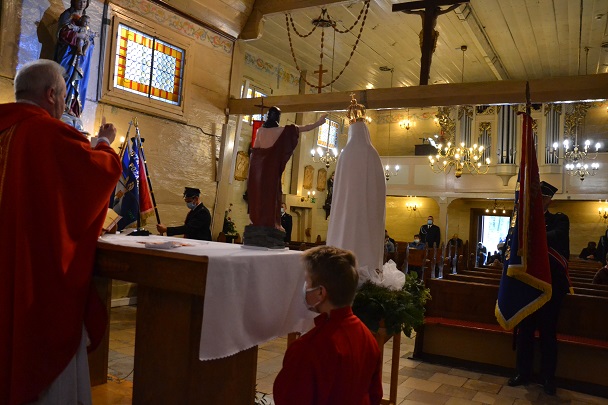 Z tej okazji w naszej parafii została odprawiona Msza św. w intencji członków Ochotniczych Straży Pożarnych, ich rodzin, seniorów oraz druhów którzy już od nas odeszli. Ks. proboszcz podkreślił, że druhny i druhowie OSP są wzorem odwagi i pracowitości. Swoim przykładem, ofiarną i bezinteresowną służbą uczą nas wszystkich odwagi i niezłomności, a także ostrzegają przed „bezmyślną odwagą” , czyli brawurą. We Mszy św. uczestniczyli także członkowie rodzin strażaków.