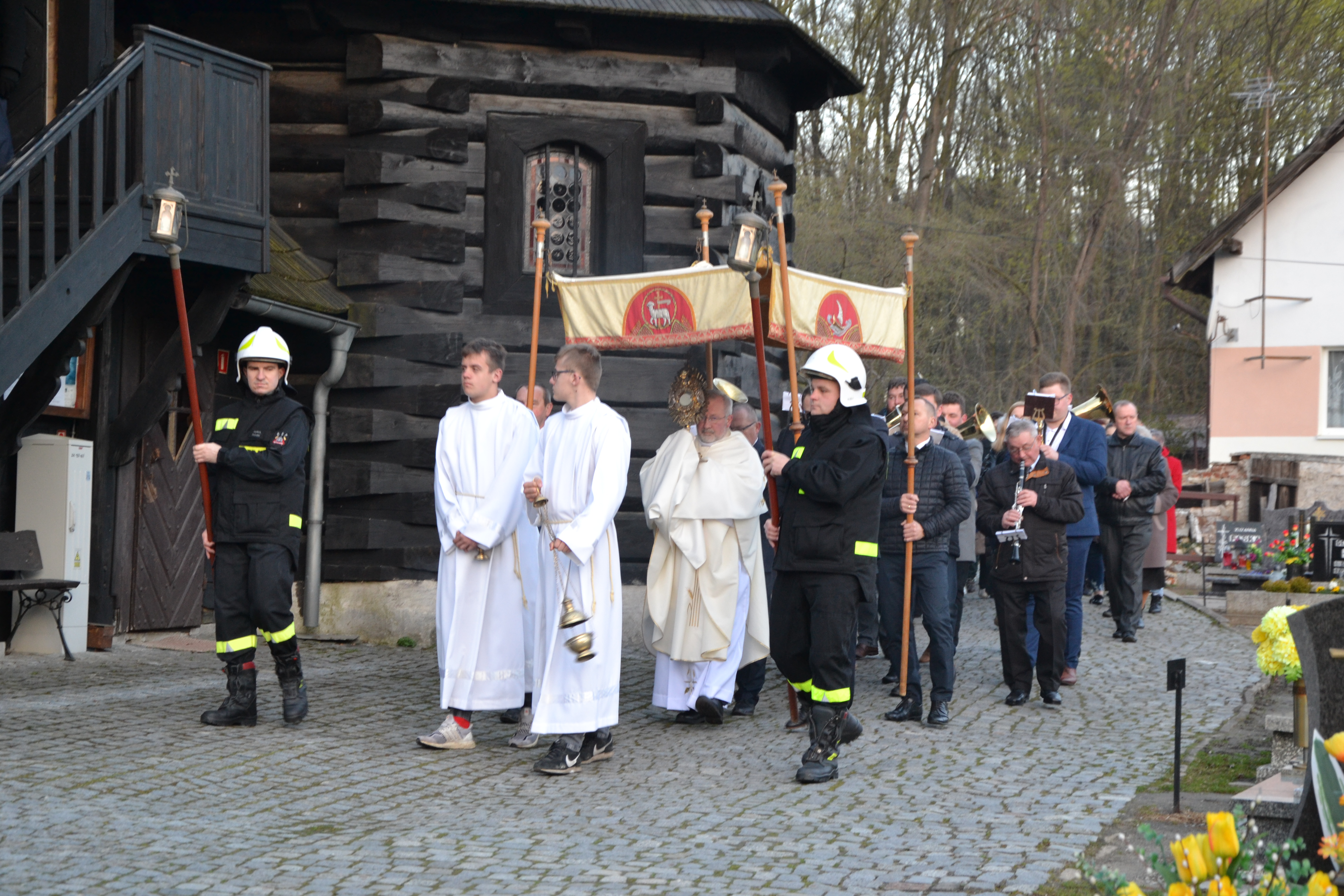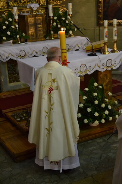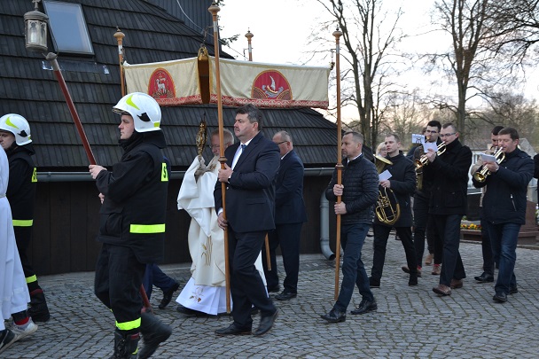 Ks. Jan złożył podziękowania wszystkim, którzy pomogli w przygotowaniu i przeżyciu Świąt Paschalnych: Liturgicznej Służby Ołtarza, osobom niosącym sztandary, pani Wandzie-zachrystiance, pani Eli Jacek za budowę Ciemnicy i Grobu Pańskiego, organistom, orkiestrze, całej wspólnocie, panom niosącym baldachim i wszystkim, których nie sposób wymienić z imienia. Bóg zapłać!