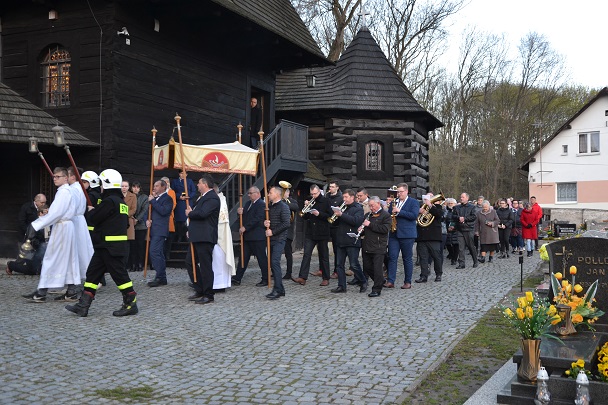 O godzinie 6.00 rano zebraliśmy się przy Grobie Pana Jezusa. Grób był pusty, a Jezus Zmartwychwstały był obecny w Najświętszym Sakramencie. On poprowadził nas w procesji rezurekcyjnej, by świat uwierzył, że przyszedł dać nam zbawienie, pokój, radość, a także by przywrócić prawdę!. Podczas procesji niesiona jest hostia w monstrancji, krzyż, który ozdobiony jest czerwoną stułą oraz figurka Jezusa, którą niósł Grzegorz Kucza, a krzyż Mariusz Sznura, strażacy OSP z Widowa. Jak co roku w naszej parafii nie zabrakło strażaków, orkiestry, Liturgicznej Służby Ołtarza, Dzieci Maryi ze Sztandarem. Uroczystościom przewodził ks. Jan Palus, który przypomniał nam ,że to pierwsze Święta Wielkanocne po pandemii, pierwsze, po powrocie do pewnej normalności, którą niestety naruszyła wojna w Ukrainie. Uroczystą Mszą świętą rezurekcyjną dopełniliśmy obrzędów Zmartwychwstania Pańskiego. Uroczystość dobiegła końca i usłyszeliśmy życzenia świąteczne ks. proboszcza oraz podziękowania.