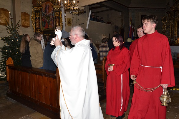 Ks. Proboszcz złożył życzenia świąteczne obecnym na Eucharystii i podziękował wszystkim, którzy przybyli, aby modlić się wspólnie w tym szczególnym, świątecznym czasie.