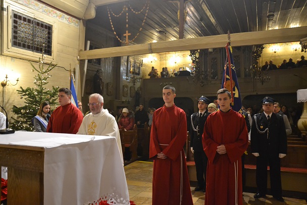 Przez cały adwent przygotowujemy się do Świąt Bożego Narodzenia, do przyjścia naszego Zbawiciela. W noc wigilijną o godz. 24.00 w naszym kościele parafialnym rozpoczęliśmy uroczystą Mszą Świętą zwaną Pasterką, świętowanie Uroczystości Narodzenia Pańskiego. Pasterka zaczyna nowy rok liturgiczny w kościele katolickim. Jest to bardzo uroczysta Msza święta, która upamiętnia przybycie pasterzy do Betlejem. Obecnie Pasterka jest symbolem powitania Jezusa przez wiernych. We Mszy Świętej uczestniczyli parafianie i goście, którzy chcieli, tak jak pasterze, pokłonić się w tę świętą Noc nowonarodzonemu Jezusowi. Uroczystej Pasterce przewodniczył Ksiądz Proboszcz Jan Palus. Msza Święta rozpoczęła się od wniesienia figury Dzieciątka Jezus i złożenia w żłóbku oraz okadzenia stajenki, która znajduje się w kaplicy. Piękna i podniosłości liturgii mszy pasterskiej dopełniała gra Orkiestry oraz radosny śpiew kolęd w wykonaniu parafian i gości.