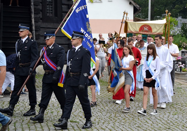 Ksiądz Proboszcz dziękował na zakończenie wszystkim parafianom i gościom za bardzo liczną obecność, podziękowania skierował także do orkiestry, która uświetniła swoją grą, sumę odpustową, a także do strażaków OSP Widów ze sztandarem i do Dzieci Maryi.
