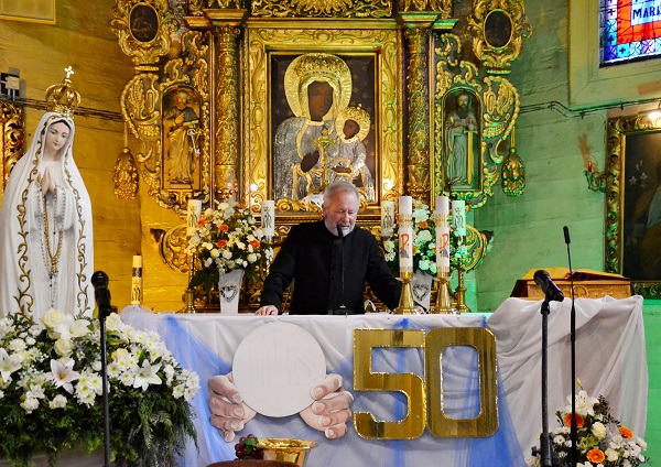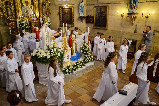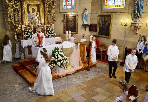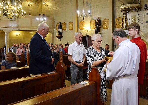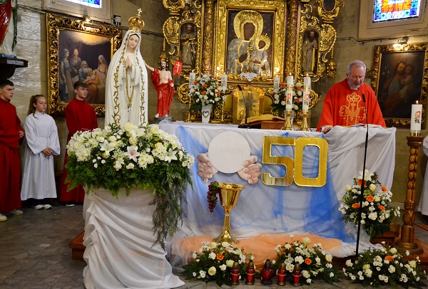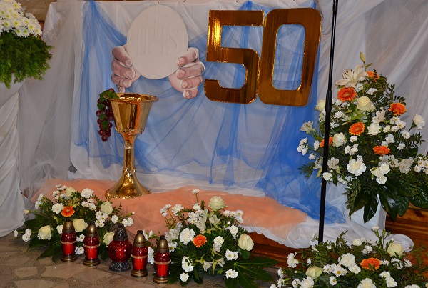 Uroczystość 50. rocznicy Pierwszej Komunii Świętej obchodziły w tym roku osoby, które przyjęły po raz pierwszy Pana Jezusa w 1974 roku. Jubileusz 50. rocznicy Komunii Świętej jest już wieloletnią tradycją w naszej parafii. W tym roku Msza Święta w intencji Złotych Jubilatów odbyła się w niedzielę 19 maja o godz. 11:00. Uroczystej wspólnej Eucharystii przewodniczył ks. proboszcz Jan Palus. Po Mszy św., tak jak przed 50 laty wykonano wspólną fotografię, tym razem jednak w nieco w mniejszej grupie.