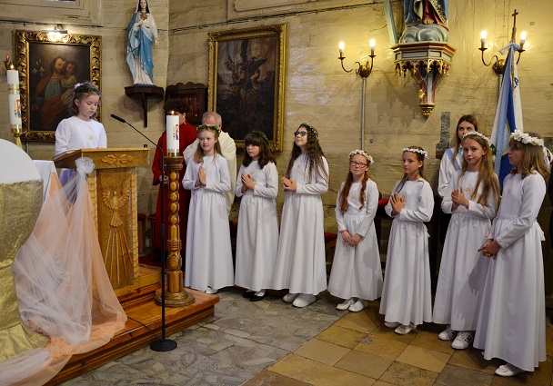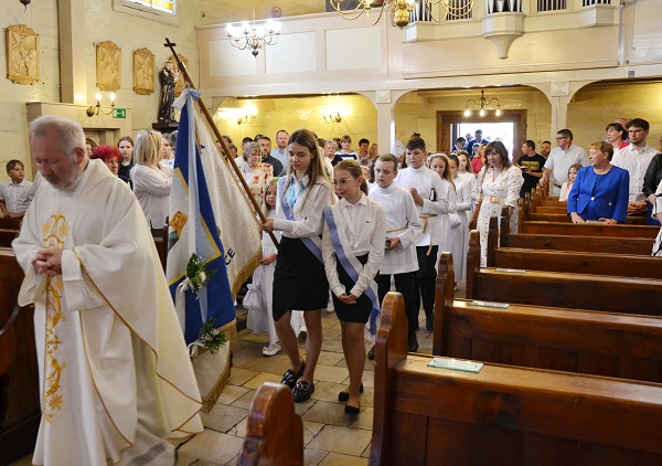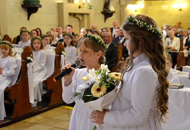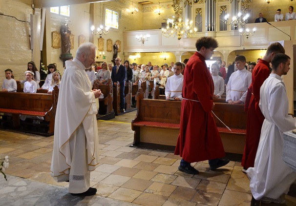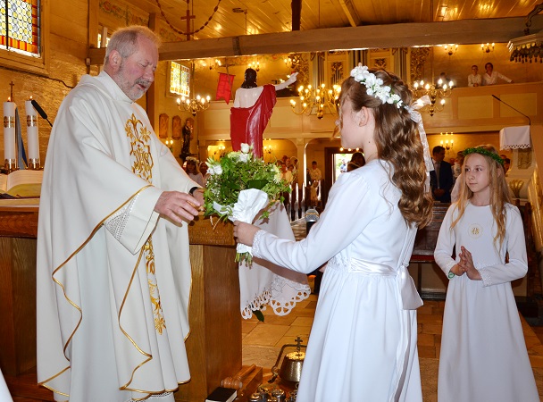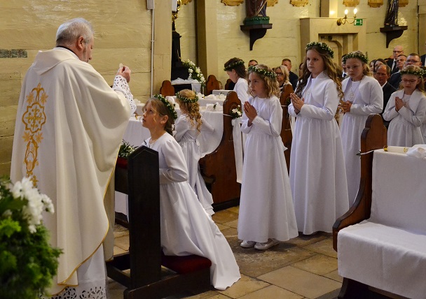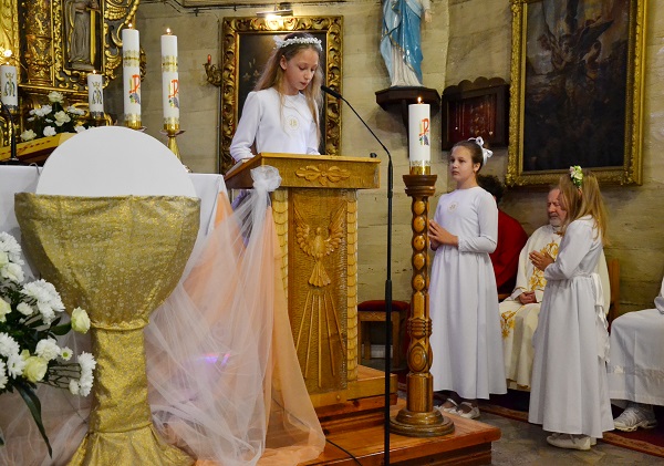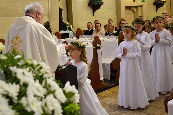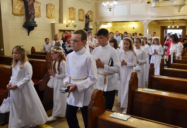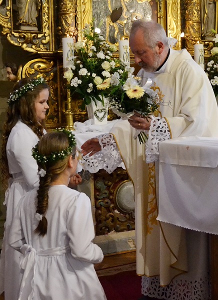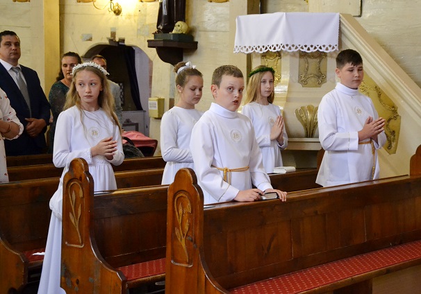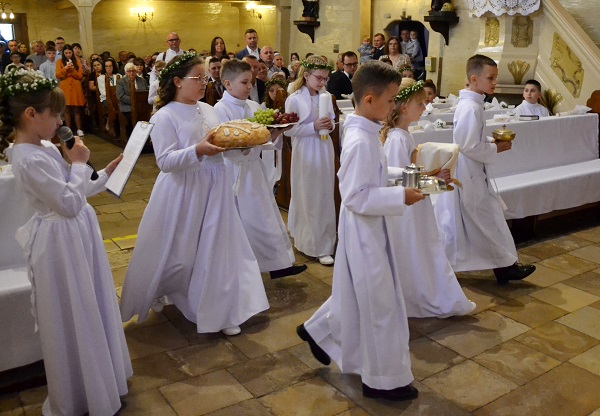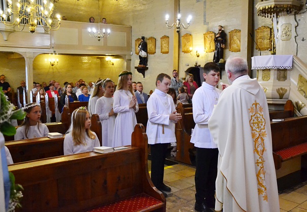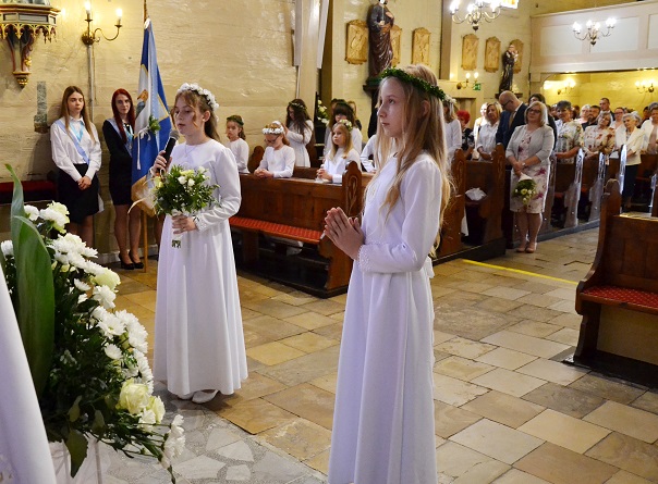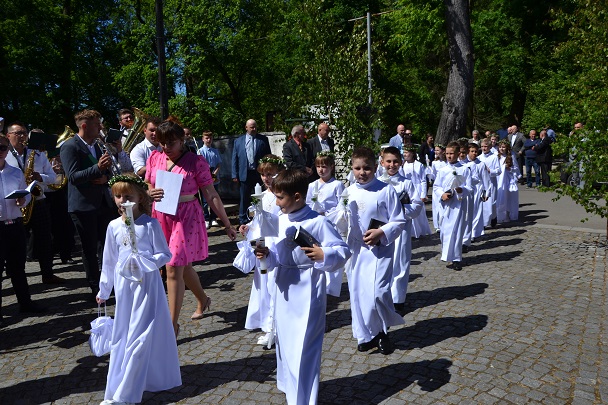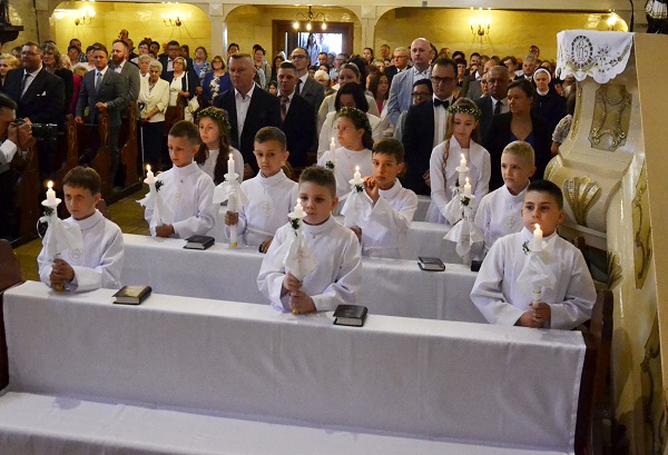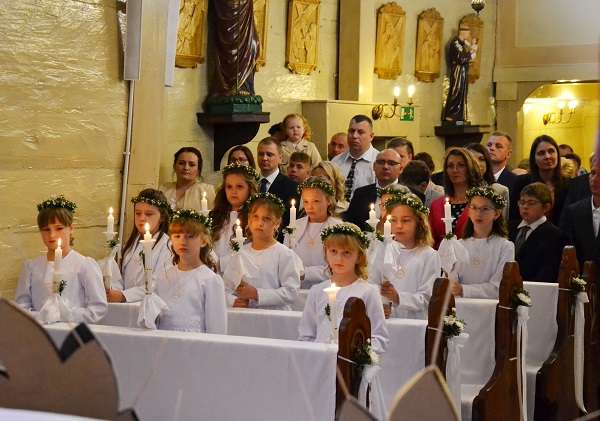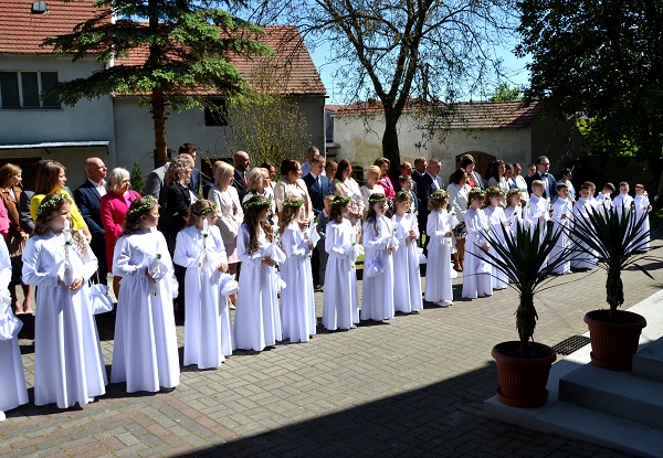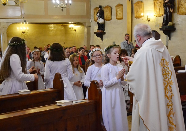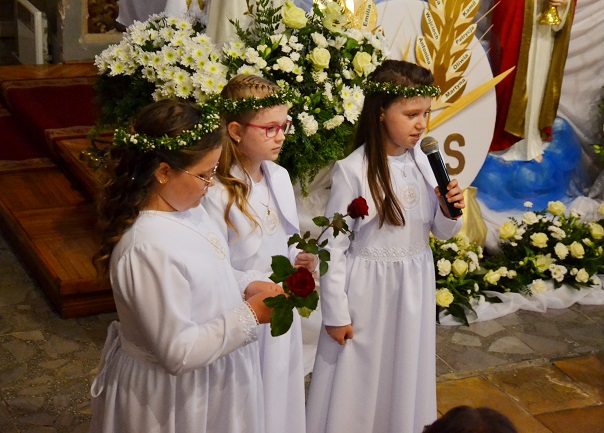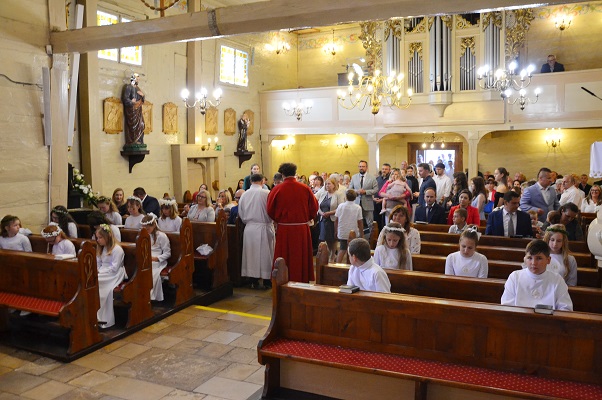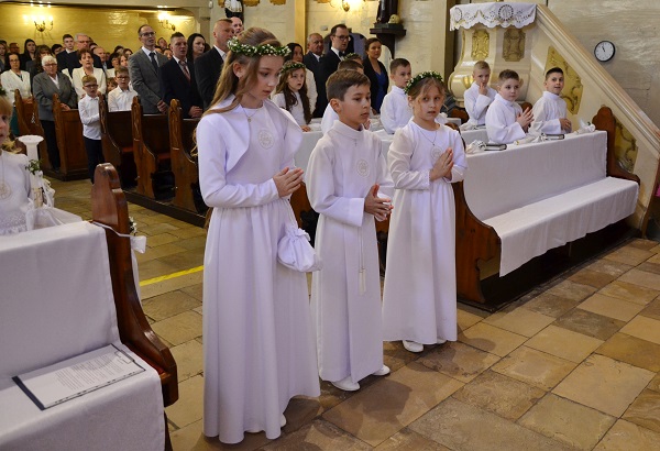 W piękną, słoneczną niedzielę 12 maja o godz. 11.00, odbyła się w naszej parafii uroczystość Pierwszej Komunii świętej. Do stołu eucharystycznego po raz pierwszy przystąpiło 20 dzieci z klasy trzeciej, które przystępowały z pokorą i wielką tremą, dzień wcześniej do Sakramentu Pokuty.