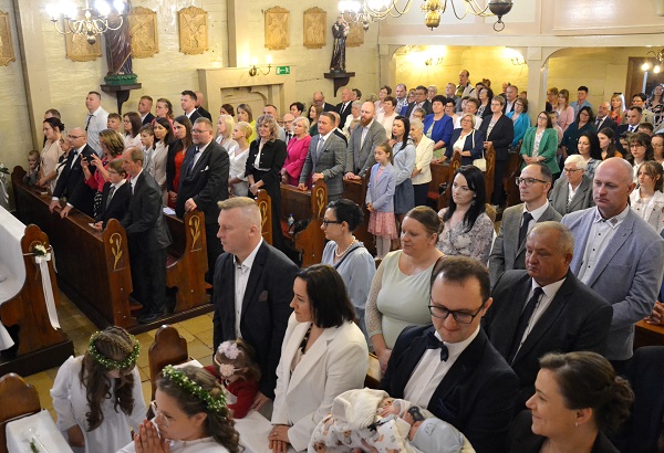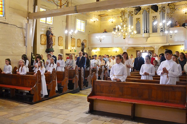 Dzieci starały się pięknie i bardzo aktywnie uczestniczyć w całej Eucharystii. Z uwagą wsłuchiwały się w kazanie wygłoszone przez ks. proboszcza, by chwilę później dostojnie kroczyć w orszaku z darami ołtarza, a przyjmując po raz pierwszy Komunię Świętą, były poważne i skupione. Był to moment niezwykle wzruszający, a jednocześnie radosny. Uroczystość Pierwszej Komunii Świętej była dla wszystkich niezapomnianym przeżyciem.