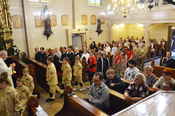 W strojach galowych i ze sztandarami we Mszy św. uczestniczyli strażacy z miejscowych jednostek Ochotniczych Straży Pożarnych tj. OSP Widów, OSP Niewiesze i OSP Słupsko. Uroczystość swoją obecnością zaszczycił Prezes Zarządu Oddziału Powiatowego Związku Ochotniczych Straży Pożarnych RP w Gliwicach – dh Andrzej Frejno, a także przedstawiciele zarządów poszczególnych jednostek. Natomiast największą radość sprawiła obecność najmłodszych adeptów pożarnictwa, dzieci i młodzieży naszej wspólnoty parafialnej, należących do lokalnych jednostek Ochotniczych Straży Pożarnych.