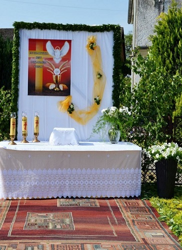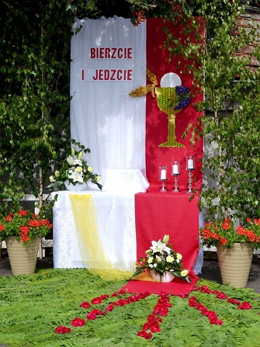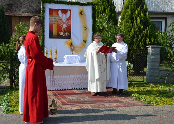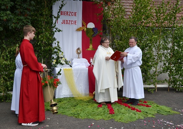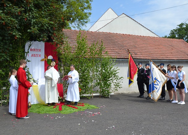 Ks. Waldemar serdeczne podziękował wszystkim, którzy aktywnie uczestniczyli w procesji Bożego Ciała, podziękował także osobom, które zaangażowały się w przygotowanie czterech ołtarzy, dziękował za poświęcenie, staranność i kreatywność. Procesja miała piękną oprawę, a każdy z ołtarzy był miejscem szczególnej modlitwy i refleksji nad tajemnicą Eucharystii.