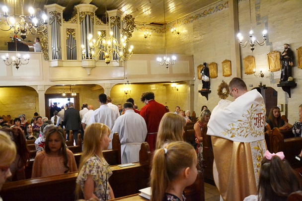Uroczystą Eucharystię zakończyła procesja z Najświętszym Sakramentem wokół kościoła.