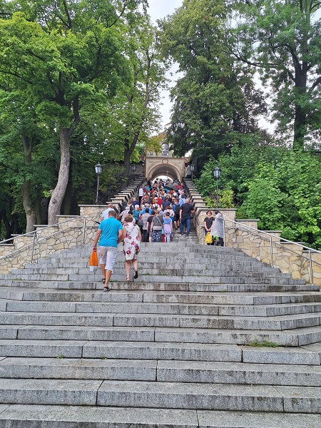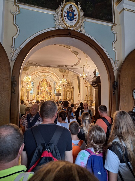 28 lipca 2024r. przedstawiciele naszej parafii oraz goście, pojechali już po raz jedenasty, na Górę św. Anny. Rankiem w niedzielę, Ojciec Hubert Bieniek MI. z parafii św. Józefa Robotnika w Taciszowie, pobłogosławił pielgrzymów zebranych przed naszym kościołem. O. Hubert pomodlił się wraz z pielgrzymami i dodał wszystkim wsparcia duchowego. Jak zawsze organizatorzy dołożyli wszelkich starań i włożyli serce w pielgrzymkowe przygotowania. Wszyscy uczestnicy zasługują na uznanie, ale nie sposób nie wymienić tutaj zaangażowania Pana Leona Kocura z żoną i rodziną oraz inne osoby współorganizujące wyjazd i czuwające nad bezpieczeństwem grupy. Wszyscy uczestnicy okazali wielką wytrwałość pomimo niezbyt sprzyjającej aury. Po uroczystej sumie odpustowej, której przewodniczył bp Waldemar Musioł, grupa pielgrzymów odwiedziła miejsce spoczynku Ojca Nikodema, a następnie skierowali się oni na trasę prowadzącą do domu. Pogoda chociaż nie dopisała, to jednak dobry humor i dobre samopoczucie nie opuszczały pielgrzymów.