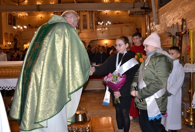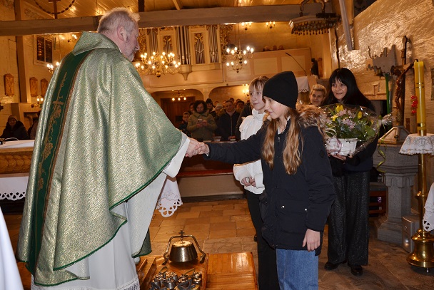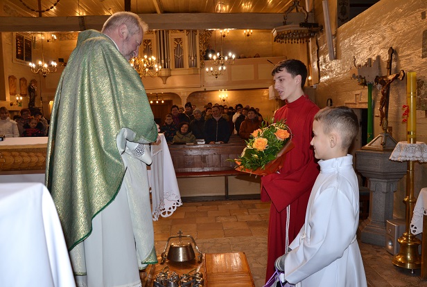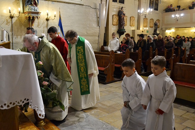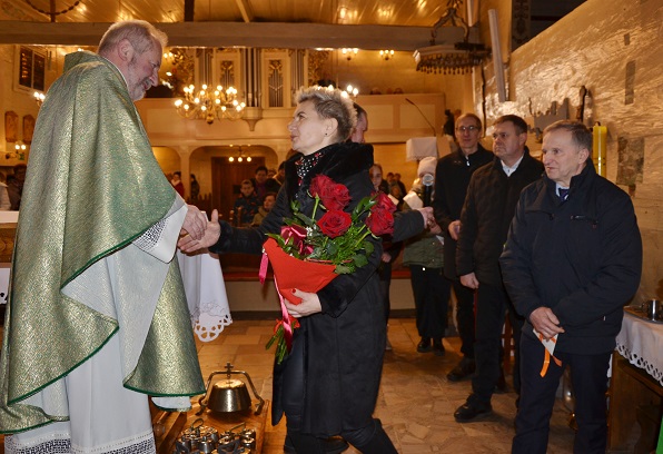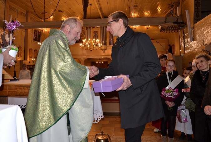 Dzisiaj, 3 marca swoje urodziny świętował ks. Proboszcz Jan Palus. Na wieczornej Mszy św. dziękowaliśmy Panu Bogu za dar jego życia, kapłaństwa i posługi w naszej parafii. Po komunii świętej odśpiewaliśmy dziękczynne „Te Deum” następnie Rada Parafialna, Służba Liturgiczna Dzieci Maryi, przedstawiciele z poszczególnych Sołectw , a także uczniowie z Panią Dyrektor szkoły, złożyli ks. Janowi życzenia i kwiaty. Solenizantowi jeszcze raz z całego serca życzymy dużo zdrowia, błogosławieństwa Bożego i wytrwałości w posłudze kapłańskiej!