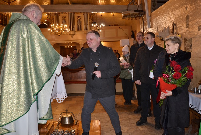 Ksiądz Proboszcz złożył wszystkim podziękowania za udział we mszy świętej, za życzenia i za piękną oprawę muzyczną w wykonaniu orkiestry. Niech Boże błogosławieństwo towarzyszy nam wszystkim."