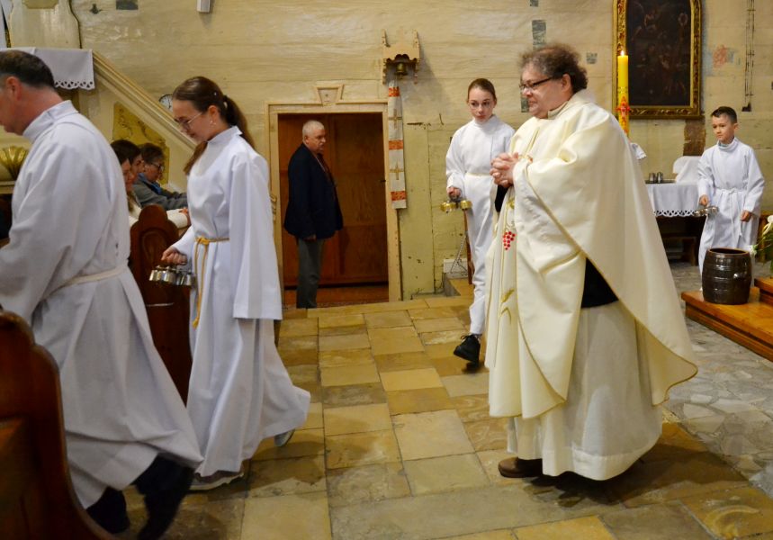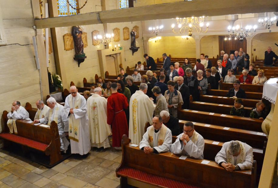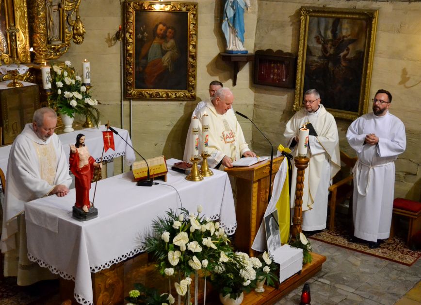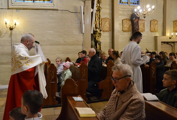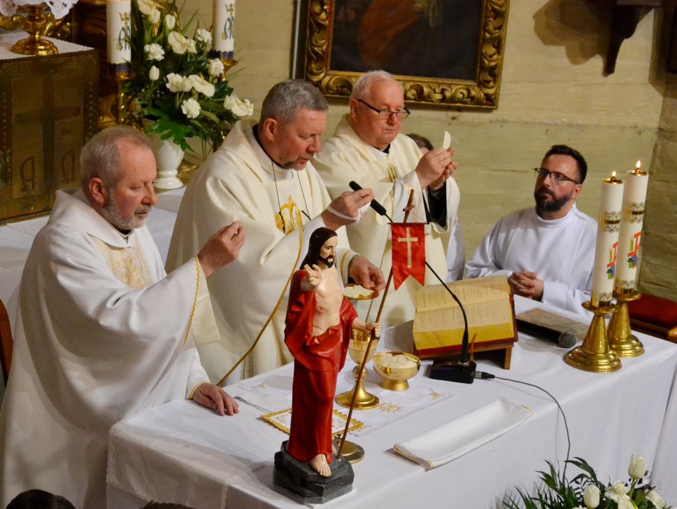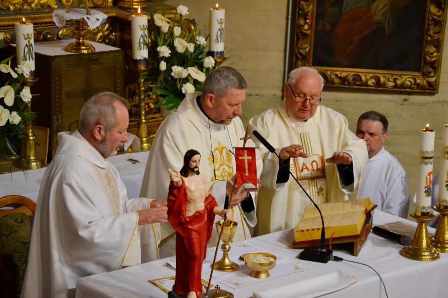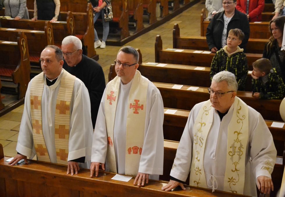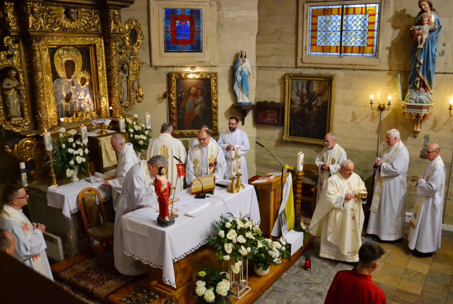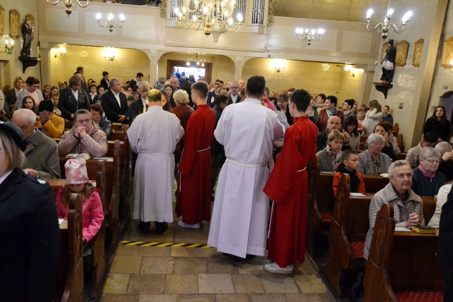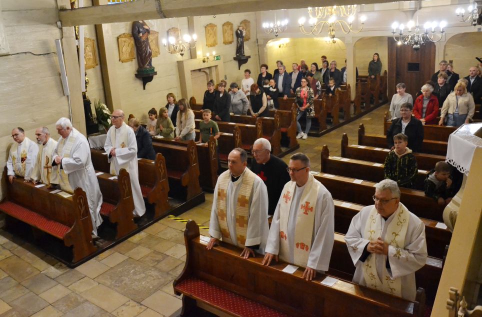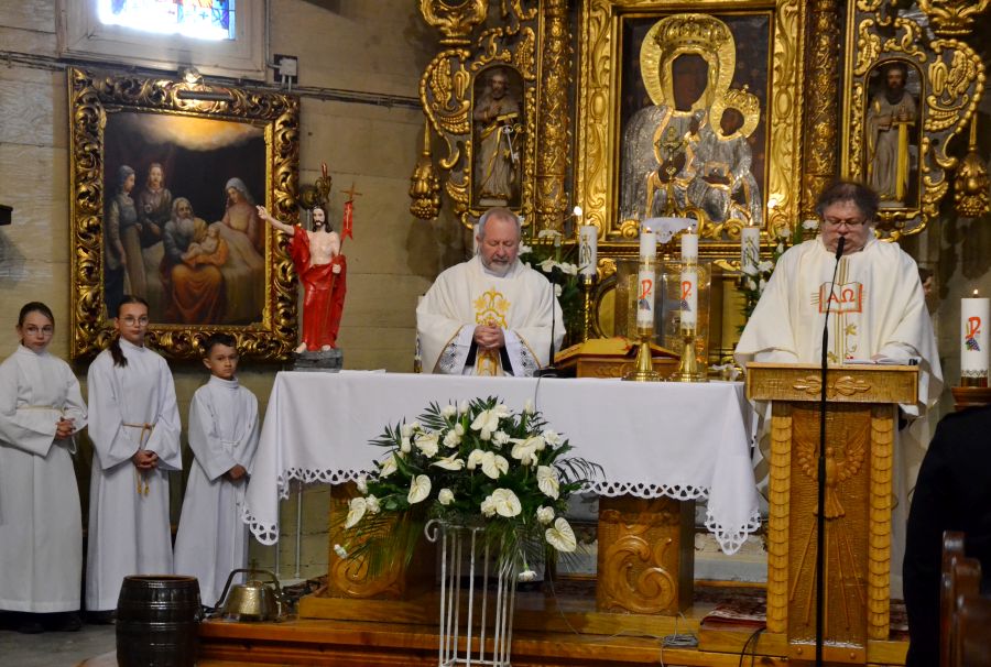 O godzinie 18.00 została odprawiona uroczysta Msza Święta koncelebrowana pod przewodnictwem dziekana dekanatu Pławniowice, ks. Krystiana Worbsa, który też wygłosił Słowo Boże. We Mszy uczestniczyli też Parafianie, co podkreślało jedność Wspólnoty Kościoła.