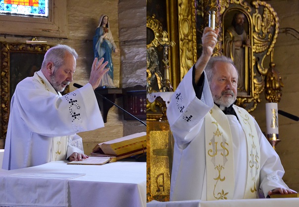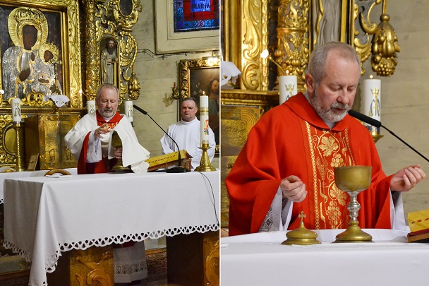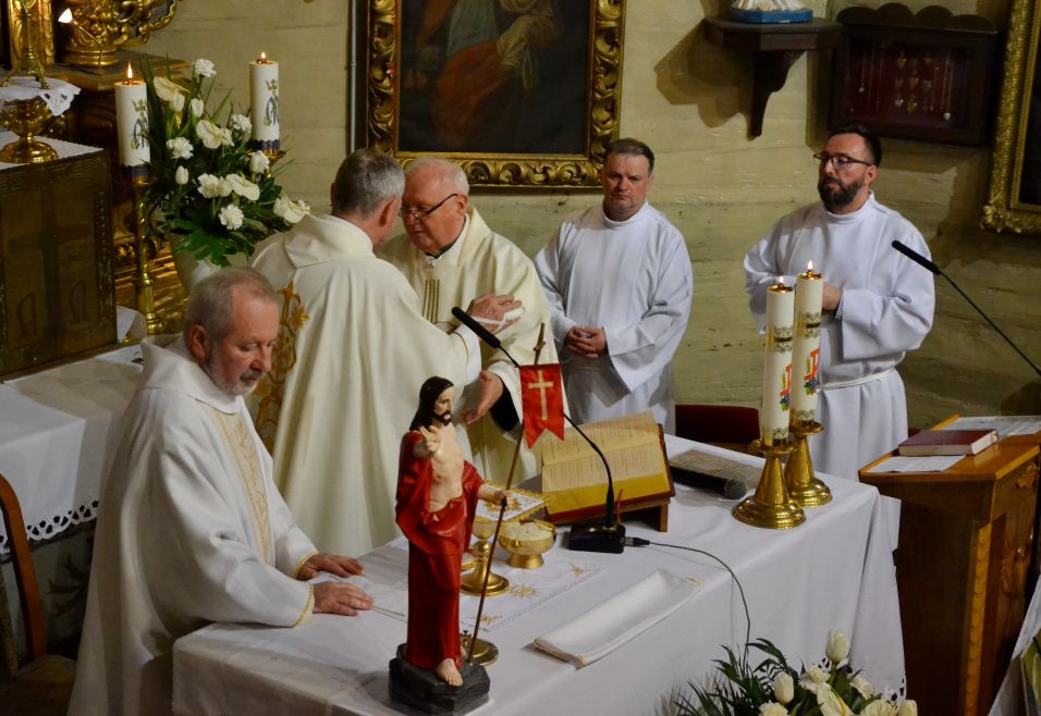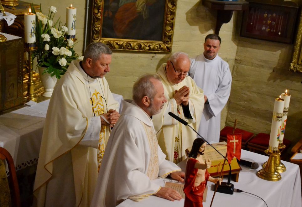 W Wielki Czwartek o godz. 19.00 rozpoczęliśmy przeżywanie Triduum Paschalnego Mszą świętą Wieczerzy Pańskiej. W tej Eucharystii modliliśmy się za zmarłych Kapłanów posługujących w naszej Parafii, prosząc dla nich o wszelkie potrzebne łaski, za wszystkich Kapłanów, którzy stanęli na drodze naszego życia. Dziękowaliśmy również za dar Eucharystii, następnie ks. Proboszcz Jan Palus przeniósł Pana Jezusa do Ciemnicy. Po zakończeniu całej Liturgii, Ks. Proboszczowi najserdeczniejsze życzenia z okazji Dnia Kapłańskiego złożyli, w imieniu całej wspólnoty parafialnej, Pani Alicja, Pan Józef i Pan Bernard.