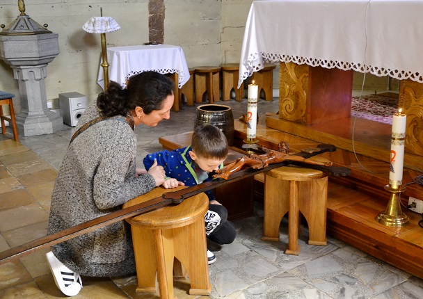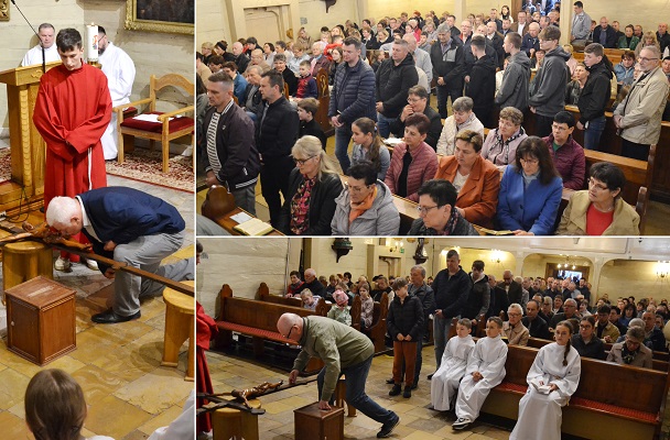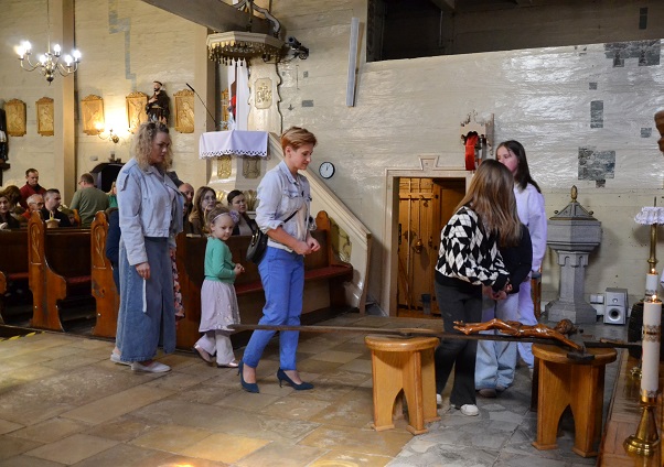 Kolejnym, ważnym punktem uroczystości Wielkiego Piątku, jest droga krzyżowa, która upamiętnia ostatnią drogę Jezusa na Golgotę. W naszej parafii to nabożeństwo jest odprawiane tuż przed Liturgią.