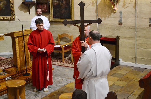 Adoracja Krzyża to najbardziej symboliczny moment liturgii Wielkiego Piątku. Kapłan odsłania krzyż w trzech etapach, śpiewając "Oto drzewo Krzyża, na którym zawisło Zbawienie świata", a następnie wszyscy śpiewają “Pójdźmy z pokłonem” i przyklękają.