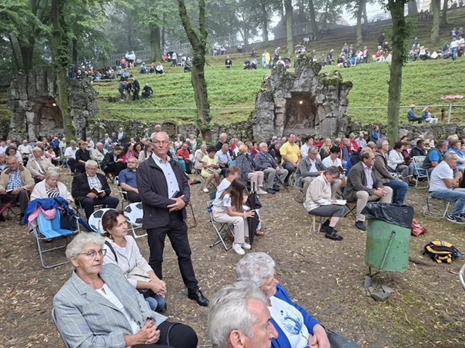 Droga na Górę św. Anny jest dość wymagająca, szczególnie na ostatnim odcinku. Pielgrzymi dali sobie czas na chwilę relaksu, a po dotarciu na miejsce na krótki odpoczynek i własne spotkanie ze św. Anną, a potem odbyła się Msza św. w intencji wszystkich pielgrzymów, a zakończenie szczególne błogosławieństwo. Później wizyta na grobie O. Nikodema ( ks. Alfreda Suchanka), który jak pamiętamy, bywał częstym gościem w naszej parafii.