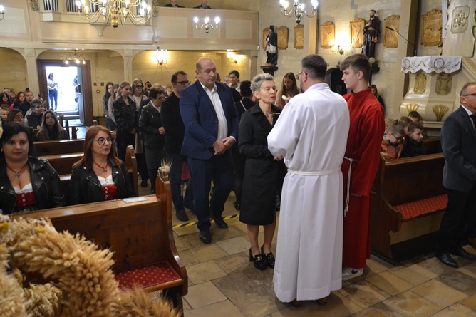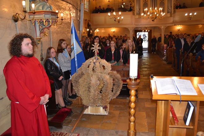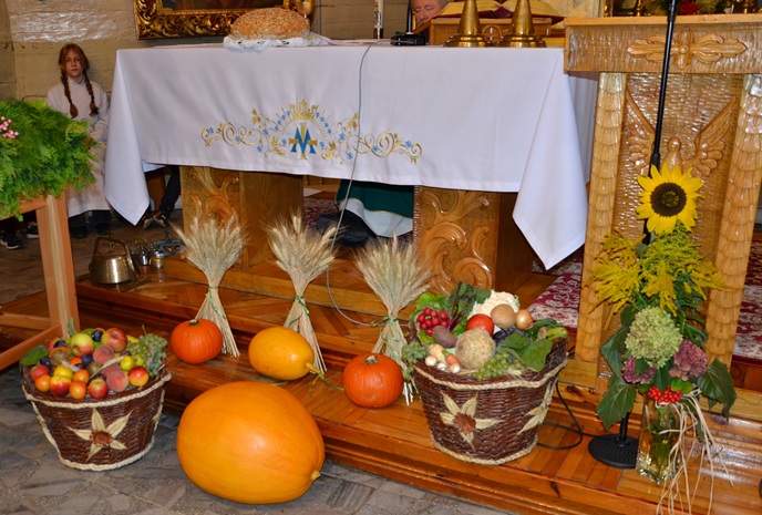W niedzielę 5 października przeżywaliśmy nasze Parafialne Dożynki. Gospodarzem tegorocznych Dożynek byli mieszkańcy Niekarmii, a zaszczytu bycia starostą Dożynek dostąpili Państwo Winniccy. Ksiądz Jan wprowadził procesyjnie do kościoła starostów dożynkowych, koronę , sztandar gospodarzy naszej parafii oraz sztandar Dzieci Maryi. Centralnym punktem dożynkowego dziękczynienia za plony, była Msza święta sprawowana o godz. 11.00 pod przewodnictwem ks. proboszcza Jana Palusa. Eucharystią dziękowaliśmy Bogu za trud pracy rolników i tegoroczne plony. Podczas uroczystej mszy świętej dziękczynnej, zebrane plony oraz koronę dożynkową pobłogosławił ks. proboszcz. Zwieńczeniem naszego dziękczynienia było odśpiewanie hymnu Ciebie Boże wielbimy.