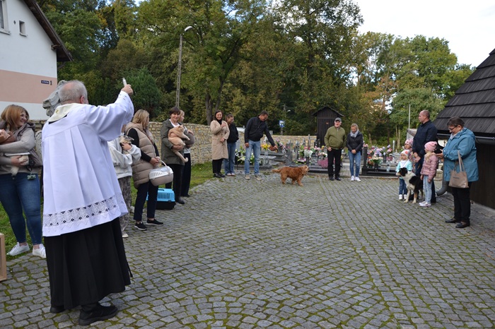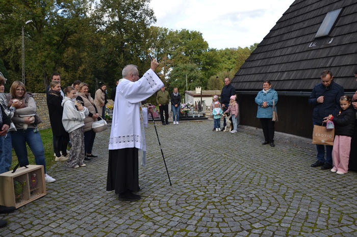 W niedzielę 5 października 2025 roku, w dniu w którym czciliśmy pamięć św. Franciszka z Asyżu, w naszej parafii ks. Proboszcz Jan Palus zaprosił, po Nabożeństwie Różańcowym, zwierzęcych przyjaciół wraz ze swoimi właścicielami, na ósme błogosławieństwo zwierząt. Uroczystość ta przyciągnęła wielu wiernych, którzy przyszli ze swoimi czworonożnymi przyjaciółmi, aby wspólnie uczestniczyć w tej wyjątkowej ceremonii. Wśród obecnych „naszych przyjaciół mniejszych” większość stanowiły psy, ale można było również zobaczyć kotki, papużki, gołębie, króliczki, świnki morskie….